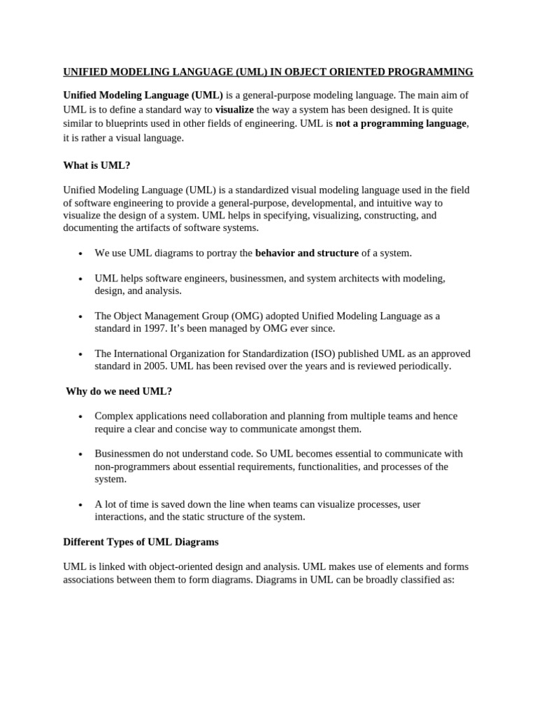 UNIFIED MODELING LANGUAGE (UML) IN OBJECT ORIENTED PROGRAMMING