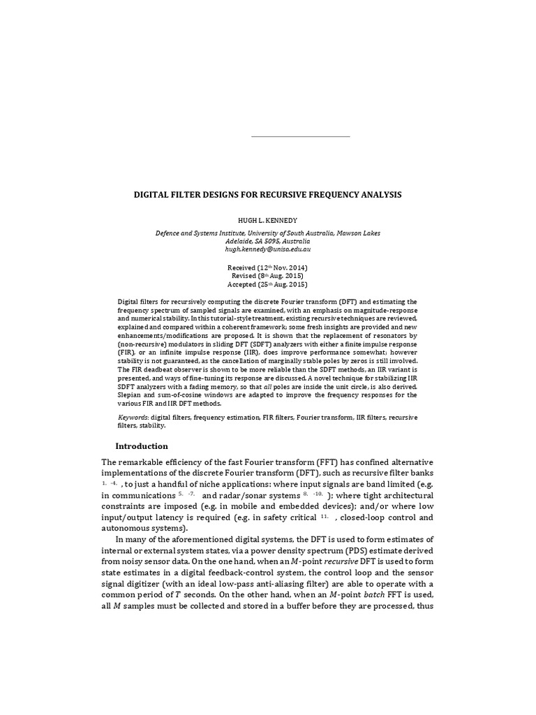 Keywords: digital filters, frequency estimation, FIR filters, Fourier transform, IIR filters, recursive