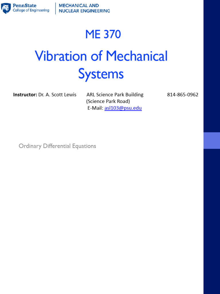 Instructor: Dr. A. Scott Lewis ARL Science Park Building 814-865-0962