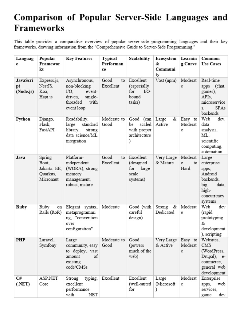 frameworks, drawing information from the "Comprehensive Guide to Server-Side Programming."