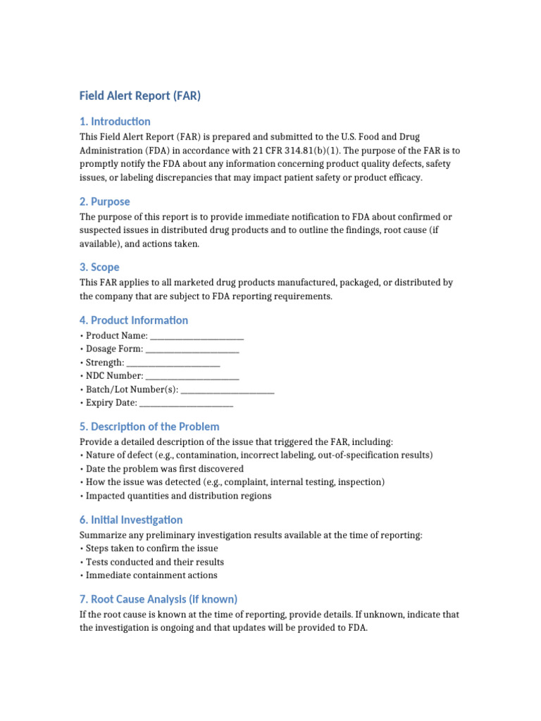 Administration (FDA) in accordance with 21 CFR 314.81(b)(1). The purpose of the FAR is to