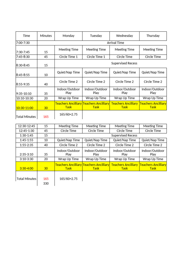 7:45-8:30 45 Circle Time 1 Circle Time 1 Circle Time Circle Time
