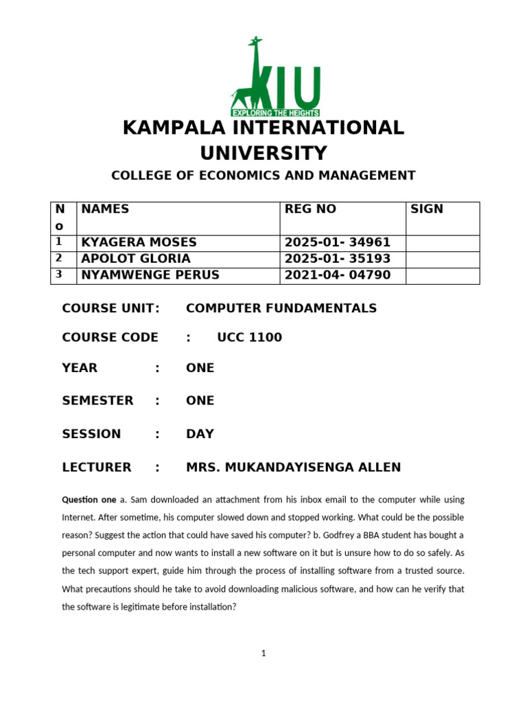 Question two a. At Kampala International University, while trying to access some files, the Secretary