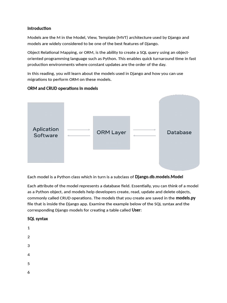 While the topics of models, ORM and migrations are pretty broad, this reading gave you a