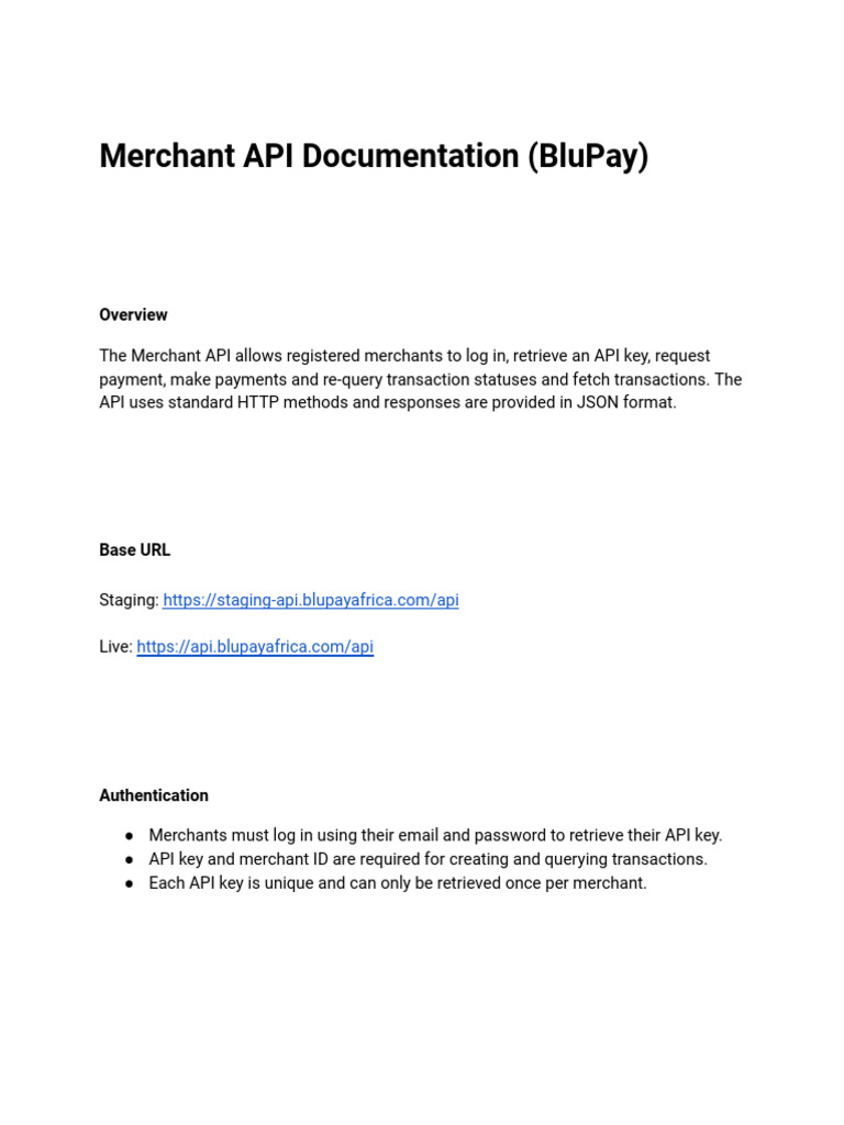 The Merchant API allows registered merchants to log in, retrieve an API key, request