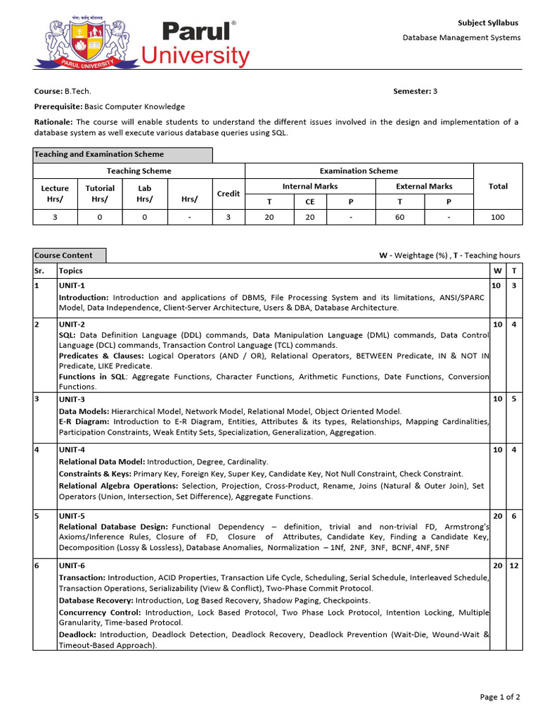Lecture Tutorial Lab Internal Marks External Marks Total