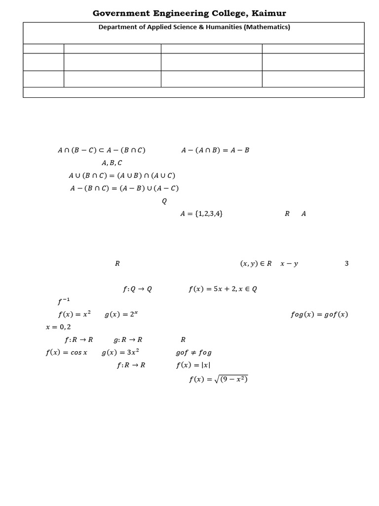 Course/Br : B. Tech./ CSE (Networks) Paper Name & Code : Discrete Mathematics