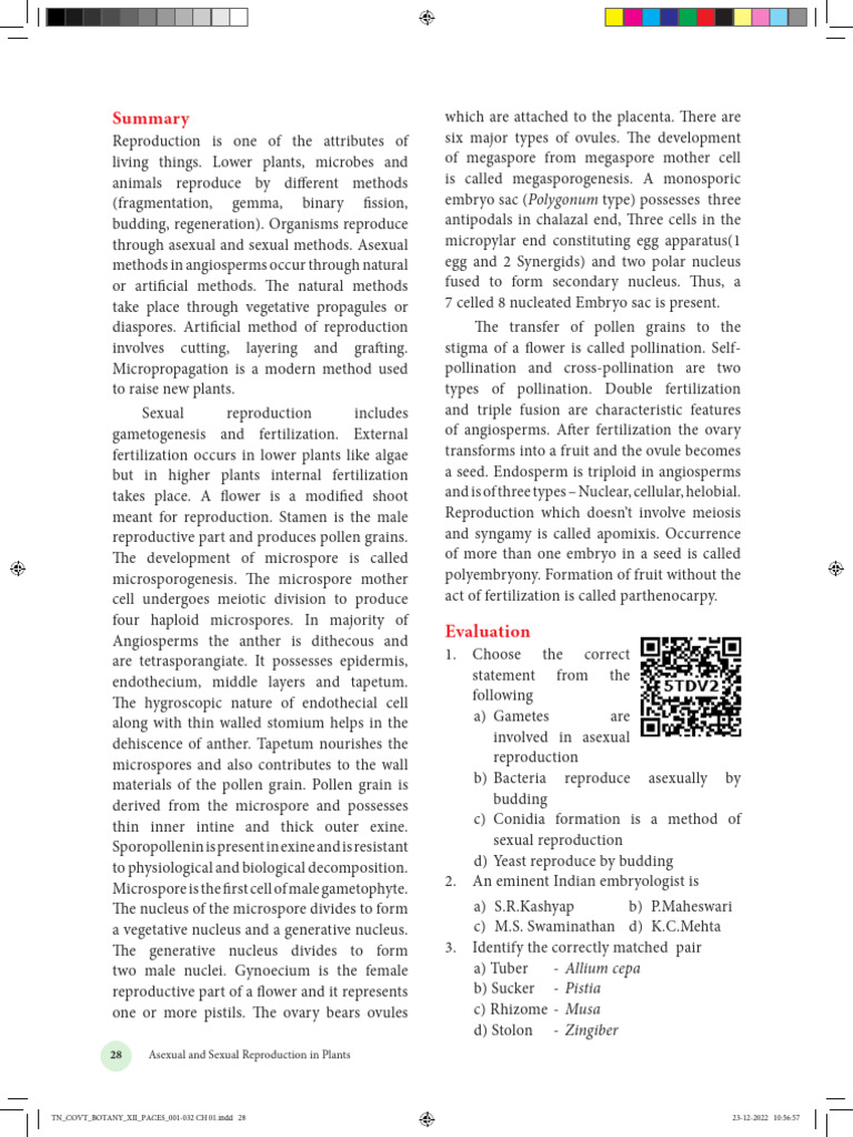 22. In majority of plants pollen is liberated at 48. List out the functions of tapetum.