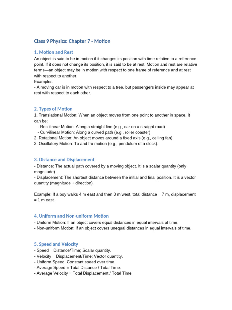 - Distance-Time Graph: Straight line = uniform speed; Curved = acceleration.