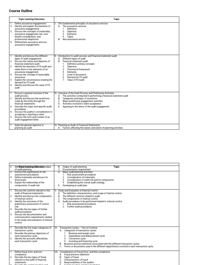1. Identify and discuss the different II. Introduction to audit services and financial statement audit