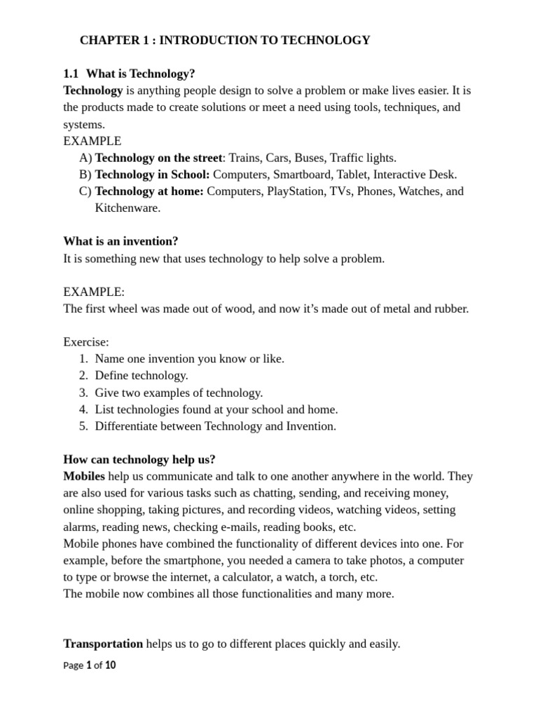 CHAPTER 1 : INTRODUCTION TO TECHNOLOGY