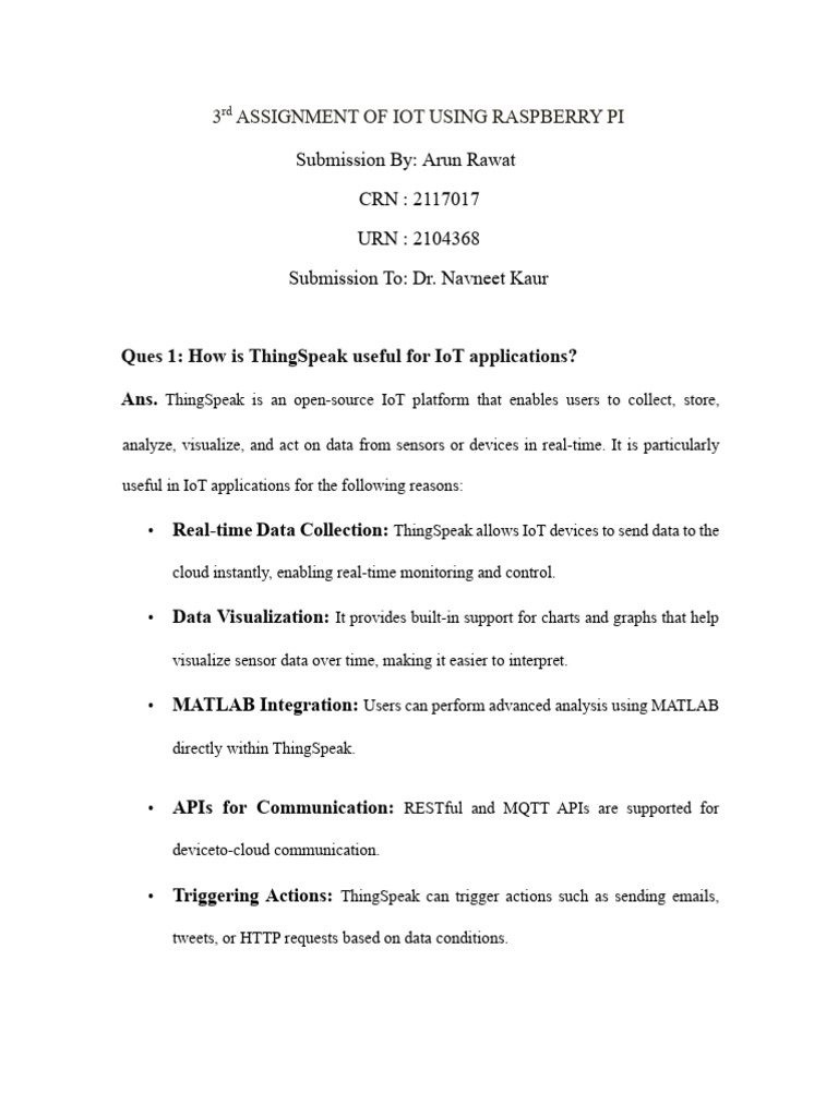 Ques 1: How is ThingSpeak useful for IoT applications?