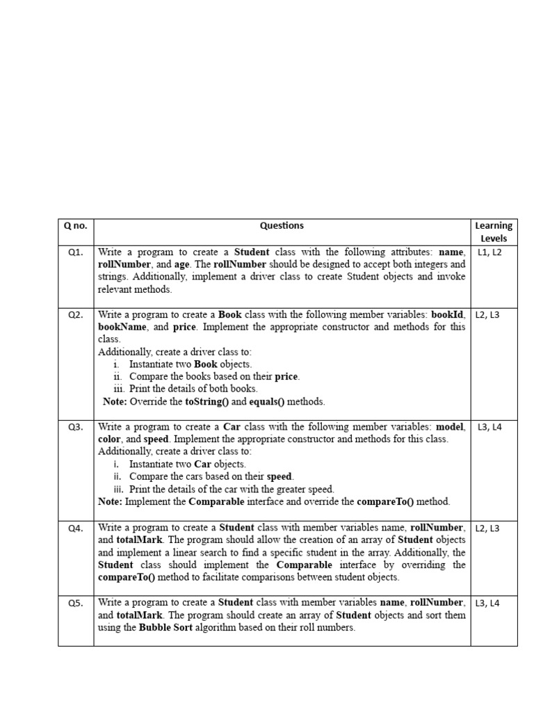 Q5. Write a program to create a Student class with member variables name, rollNumber, L3, L4