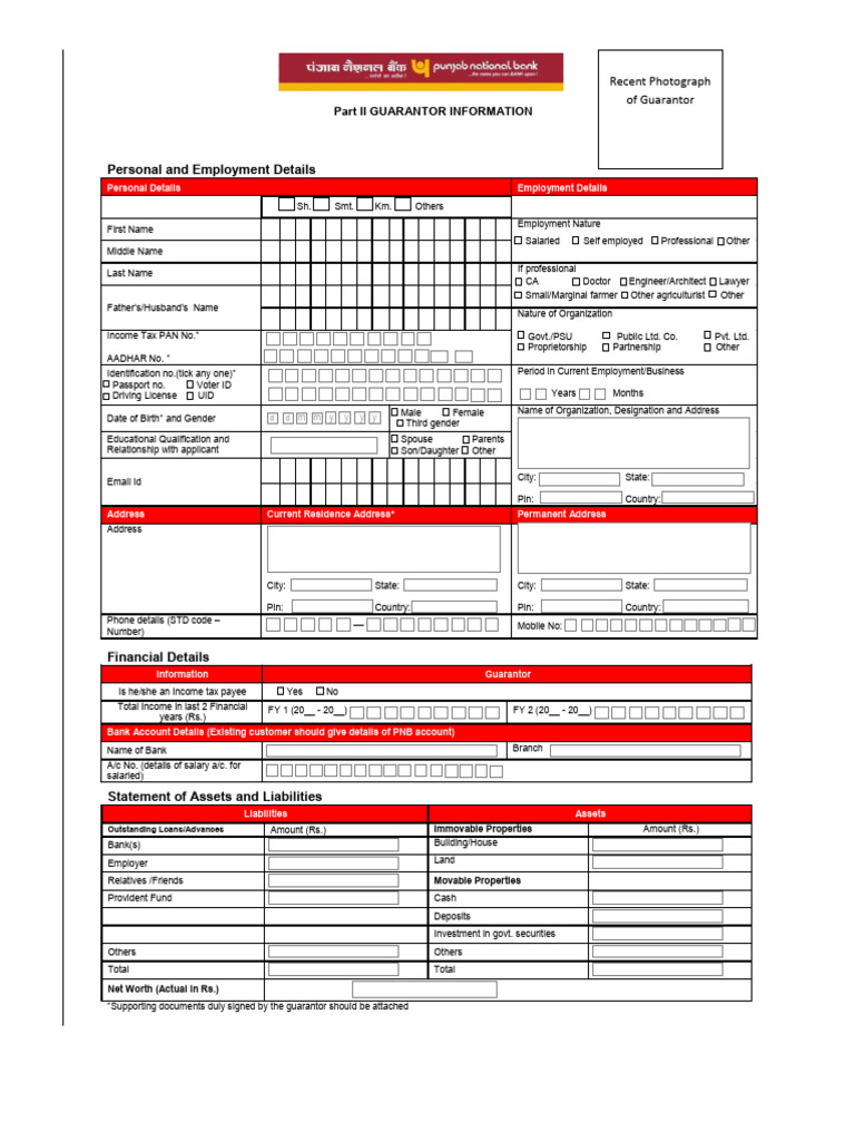 Note: In case there is more than one guarantor, he/she should fill up another form (Part-II Guarantor Information).