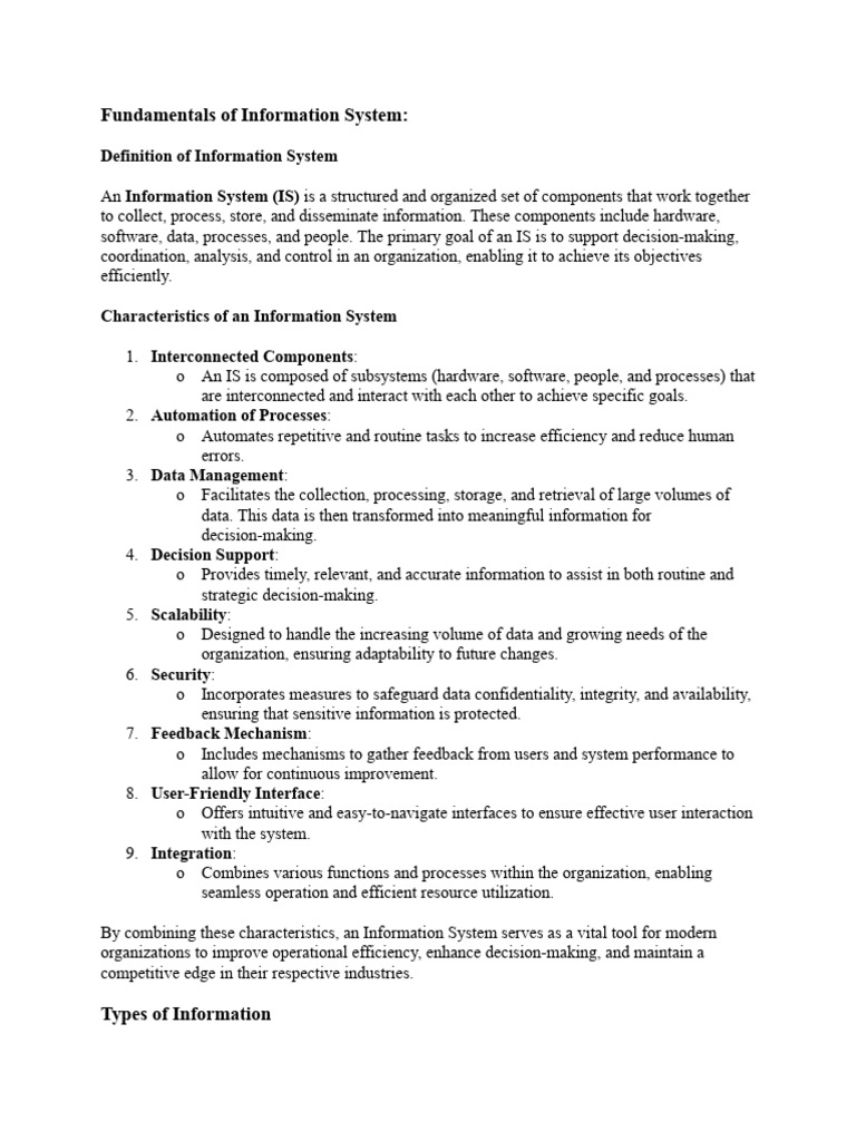 By combining these characteristics, an Information System serves as a vital tool for modern