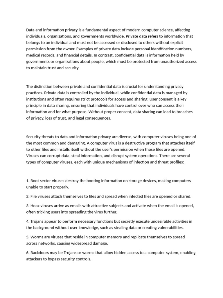 Security threats to data and information privacy are diverse, with computer viruses being one of