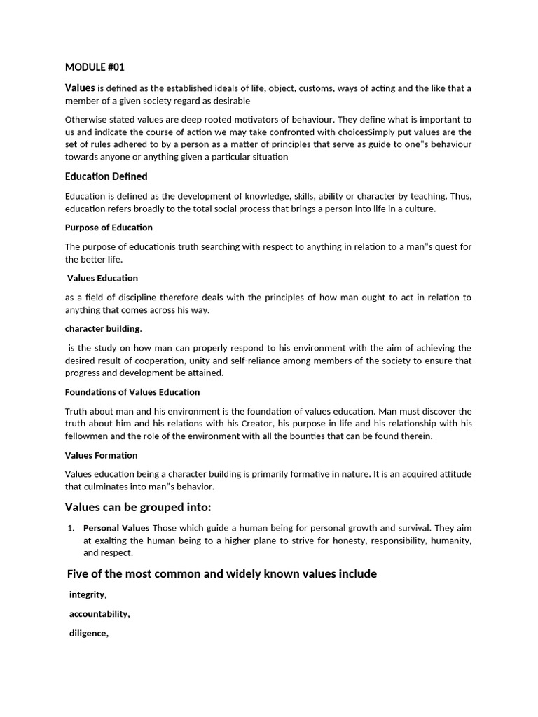 1. Personal Values Those which guide a human being for personal growth and survival. They aim
