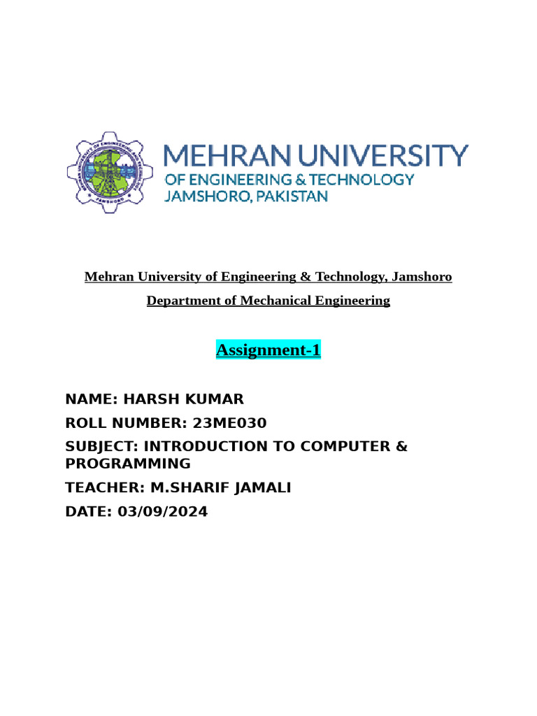 SUBJECT: INTRODUCTION TO COMPUTER &