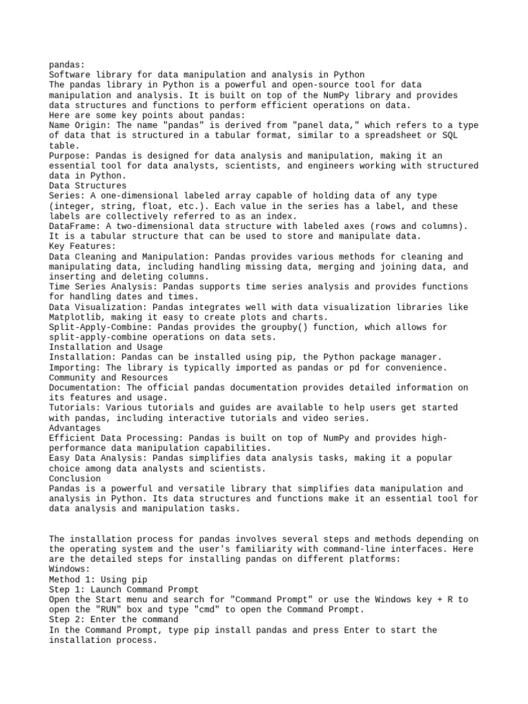 Here are some key points about pandas: