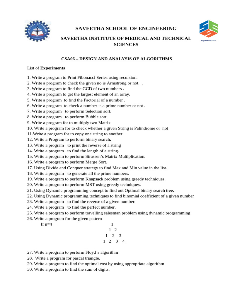 CSA06 – DESIGN AND ANALYSIS OF ALGORITHMS