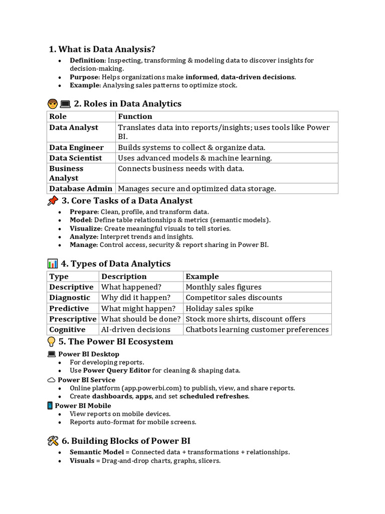 Data Analyst Translates data into reports/insights; uses tools like Power