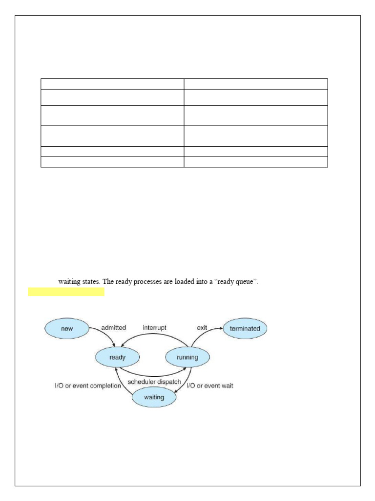 ready and waiting states. The ready processes are loaded into a “ready queue”.