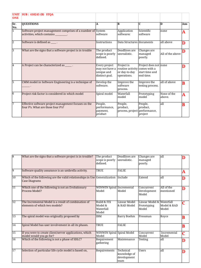 UNIT SUB : 410245 (B) STQA