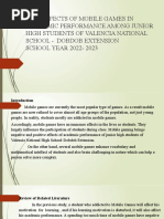 This study aims to determine the effects of mobile phone gaming to the academic performance