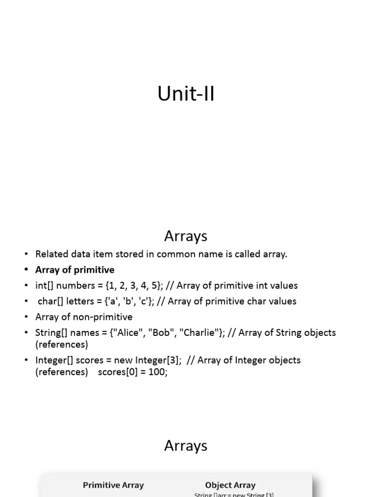 • Integer[] scores = new Integer[3]; // Array of Integer objects