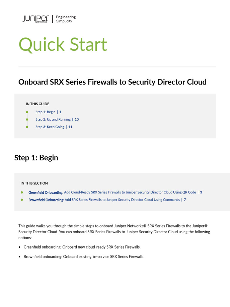 This guide walks you through the simple steps to onboard Juniper Networks® SRX Series Firewalls to the Juniper®