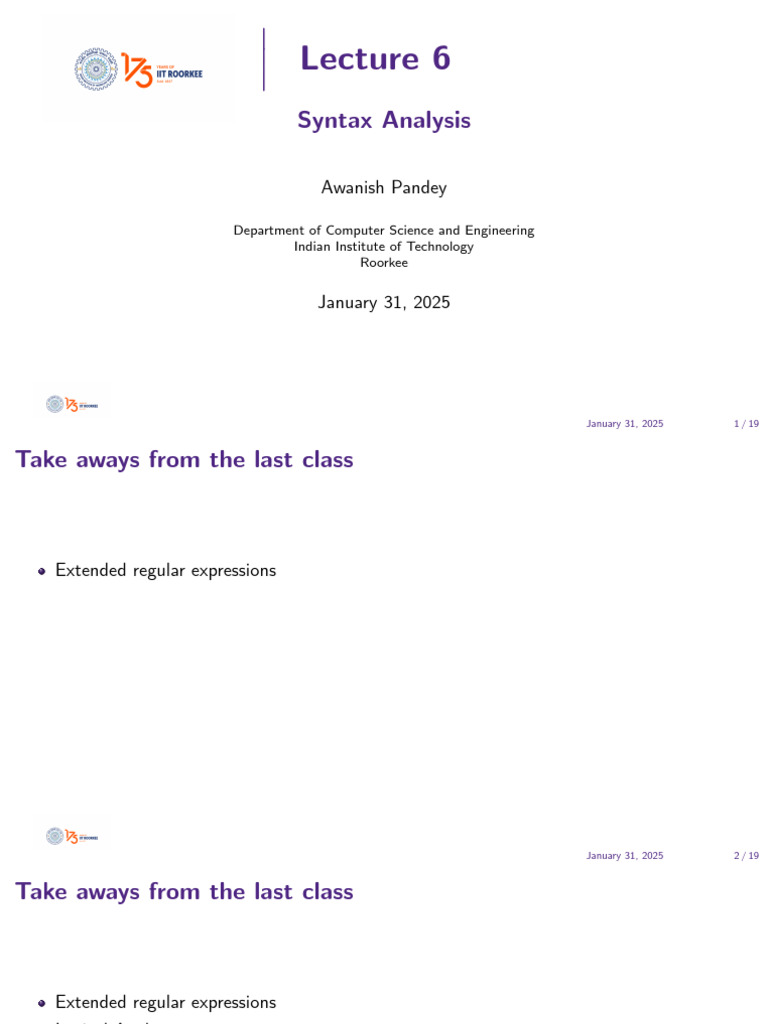 ▶ Bottom-up parsing: Construction of the parse tree starts from the leaf nodes (tokens or