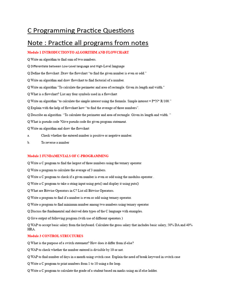 C Programming Practice Questions