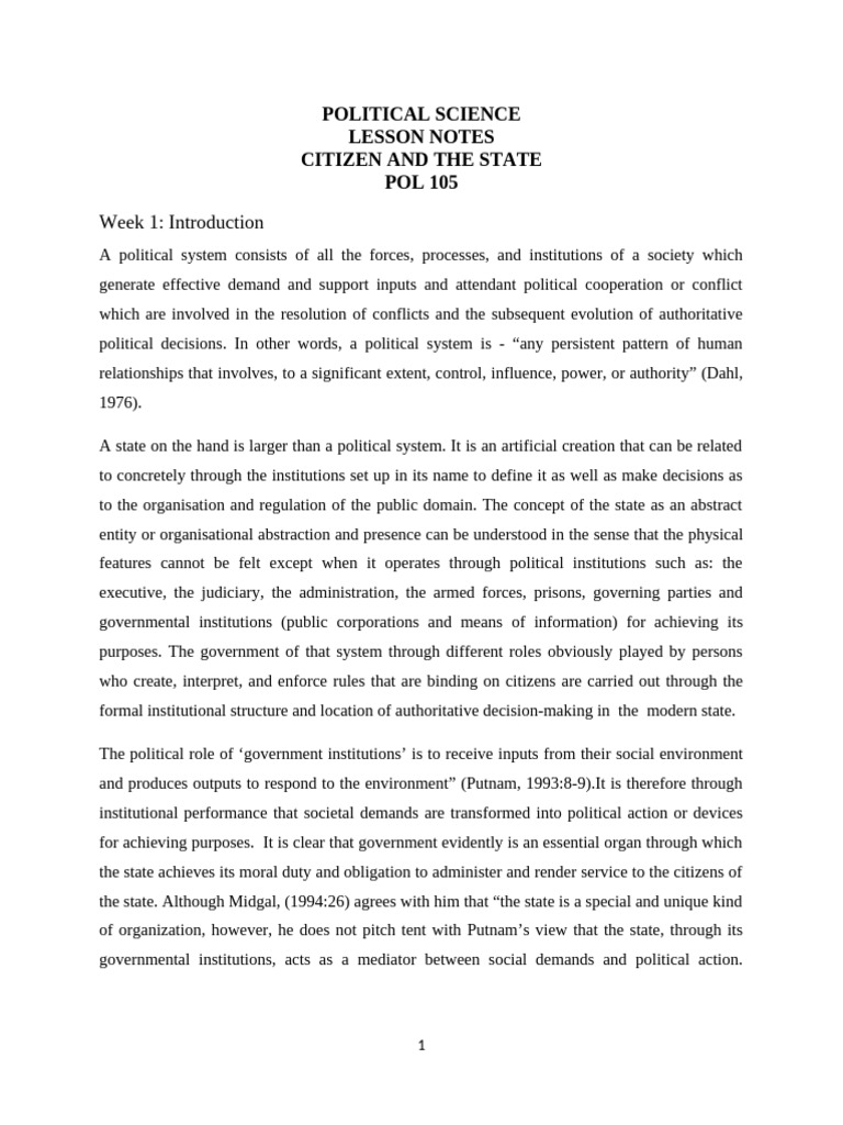 Citizen and The State Course