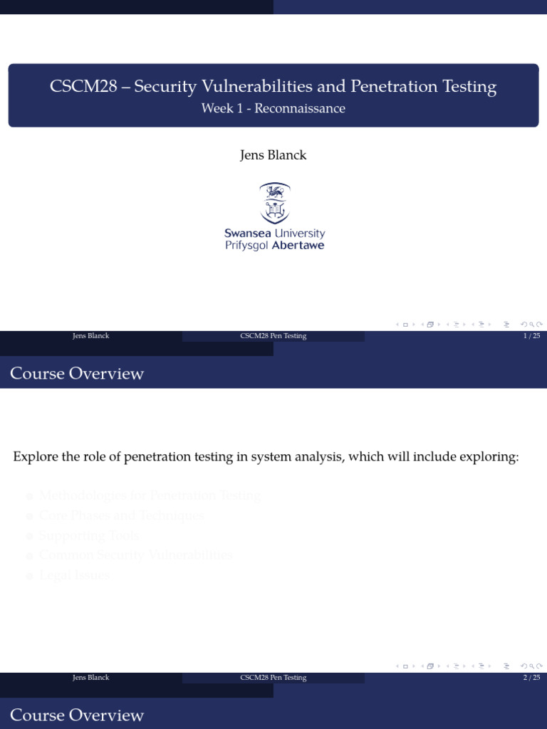 Jens Blanck CSCM28 Pen Testing 1 / 25