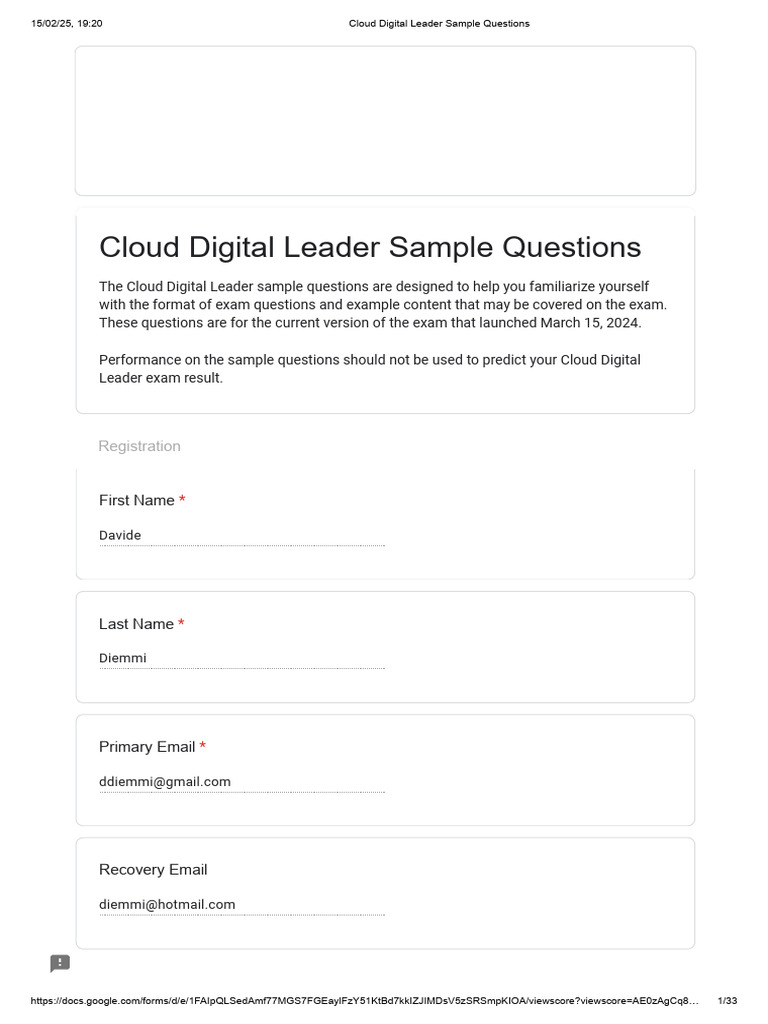 15/02/25, 19:20 Cloud Digital Leader Sample Questions