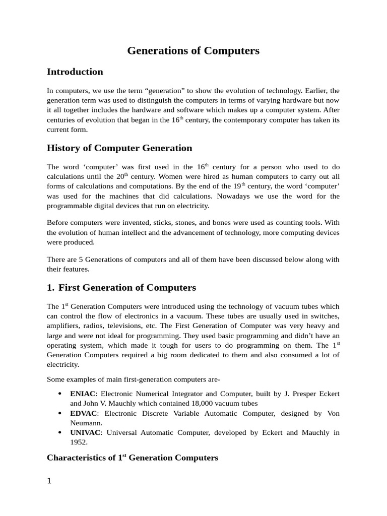 1. First Generation of Computers