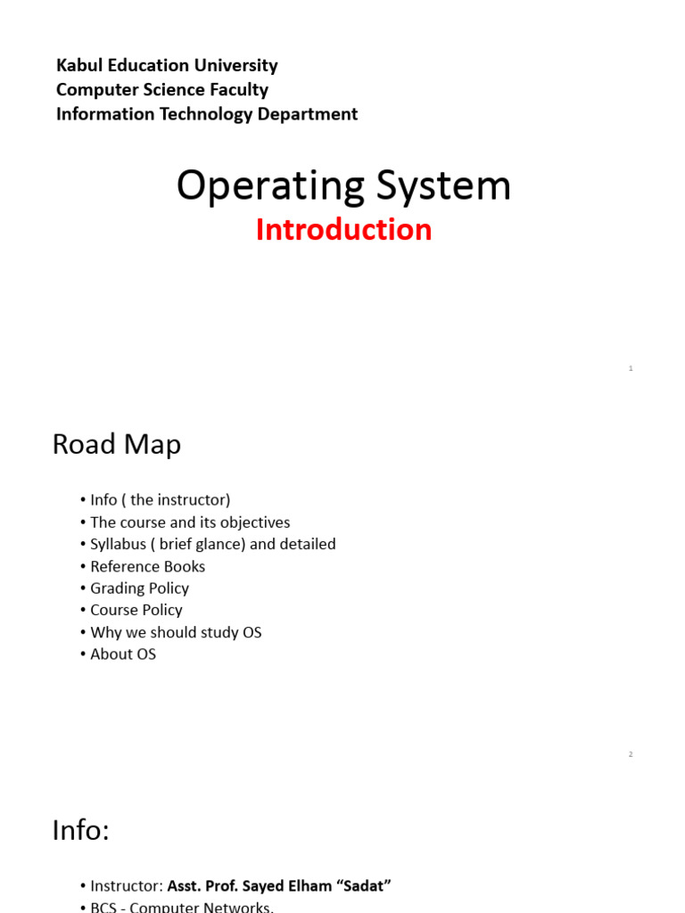 • Instructor: Asst. Prof. Sayed Elham “Sadat”