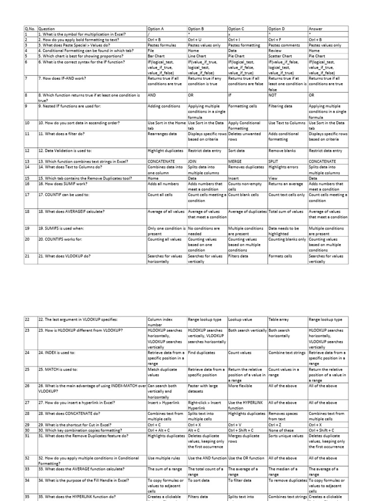 34 34. What is the purpose of the Fill Handle in Excel? To copy formulas or To sort data To filter data To remove duplicates To copy formulas or