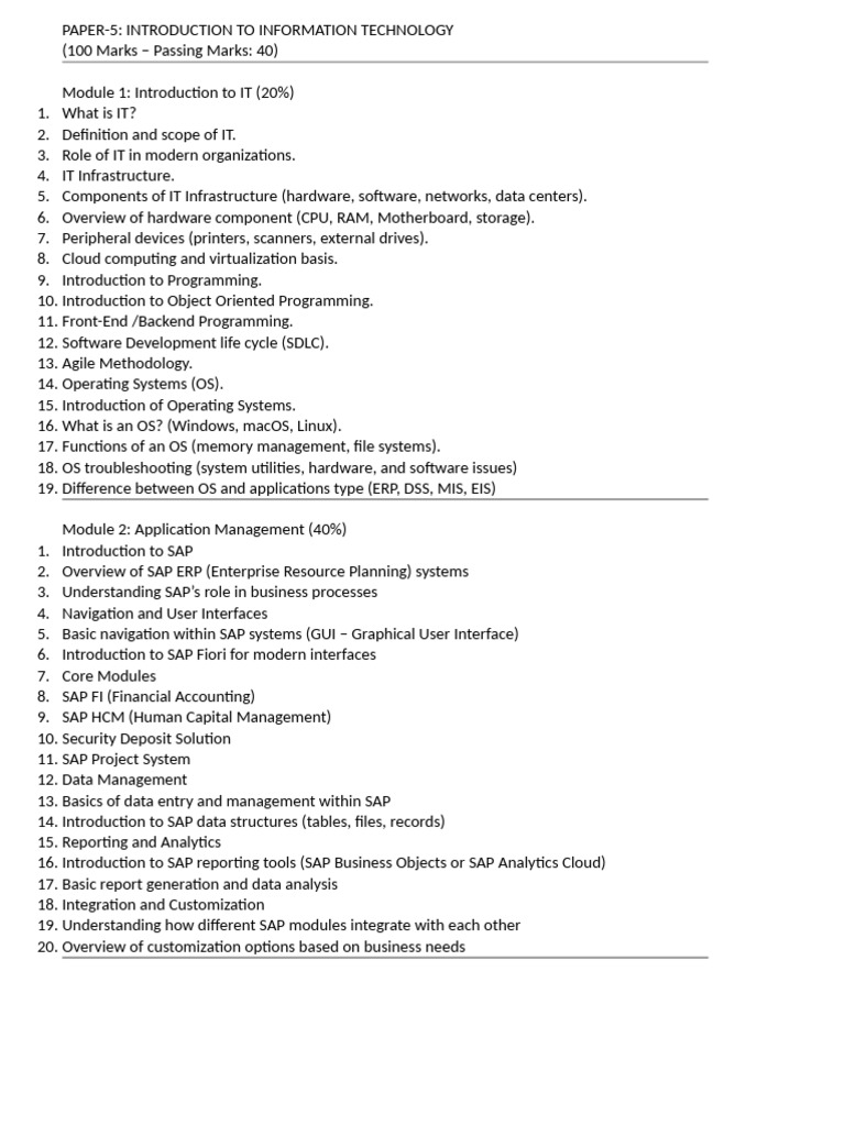 PAPER-5: INTRODUCTION TO INFORMATION TECHNOLOGY