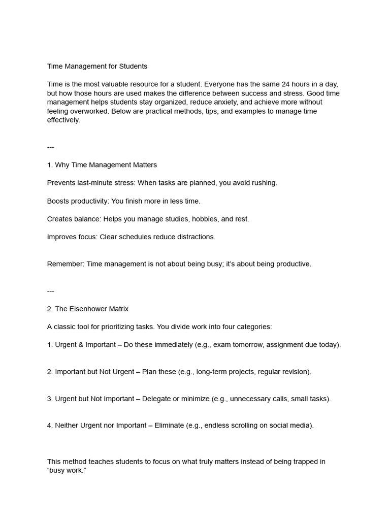 smaller parts, and using methods like the Pomodoro technique, students can achieve more