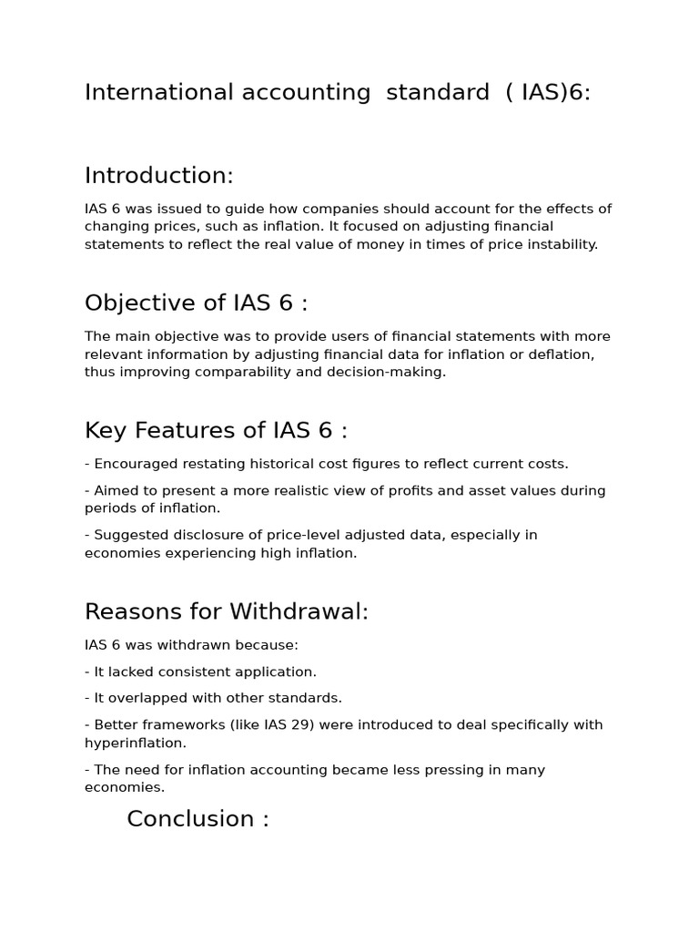 IAS 6 was nearly attempted to deal with the impact of inflation on financial