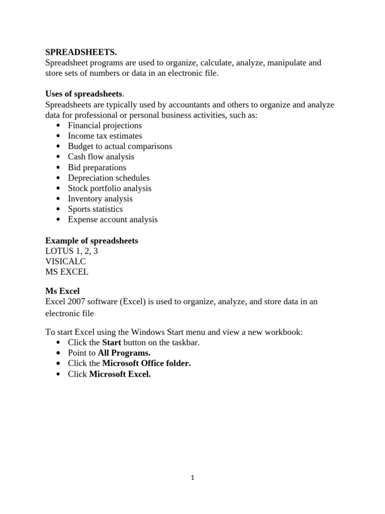Spreadsheets are typically used by accountants and others to organize and analyze