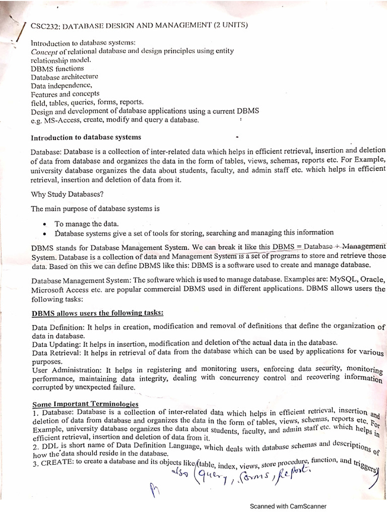 : DATABASE DESIGN AND MANAGEMENT (2 UNITS)