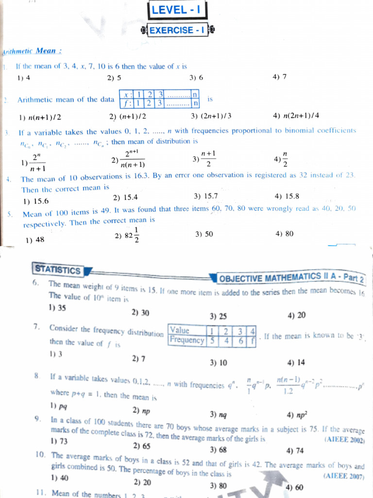 1.If the mean of 3, 4, x, 7, 10 is 6 then the value of x is