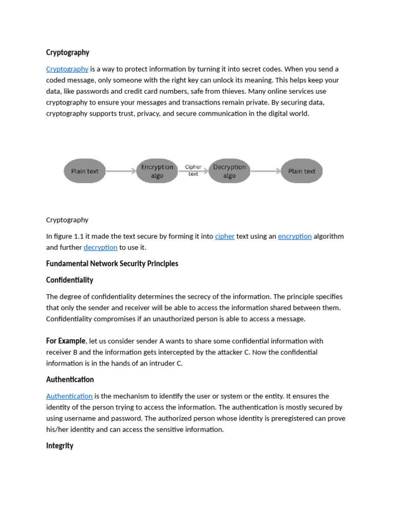 Cryptography and the basics of network security principles helps to keep our digital world safe.