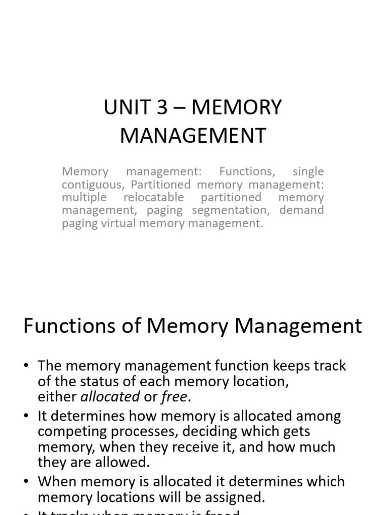 Functions of Memory Management