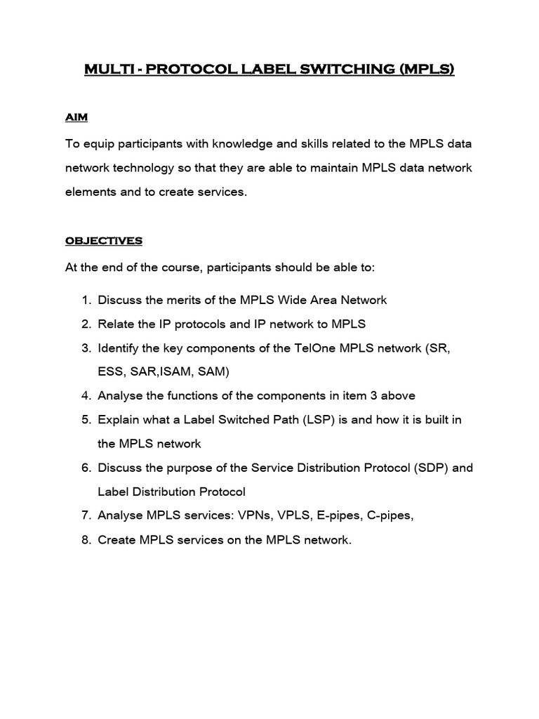 To equip participants with knowledge and skills related to the MPLS data