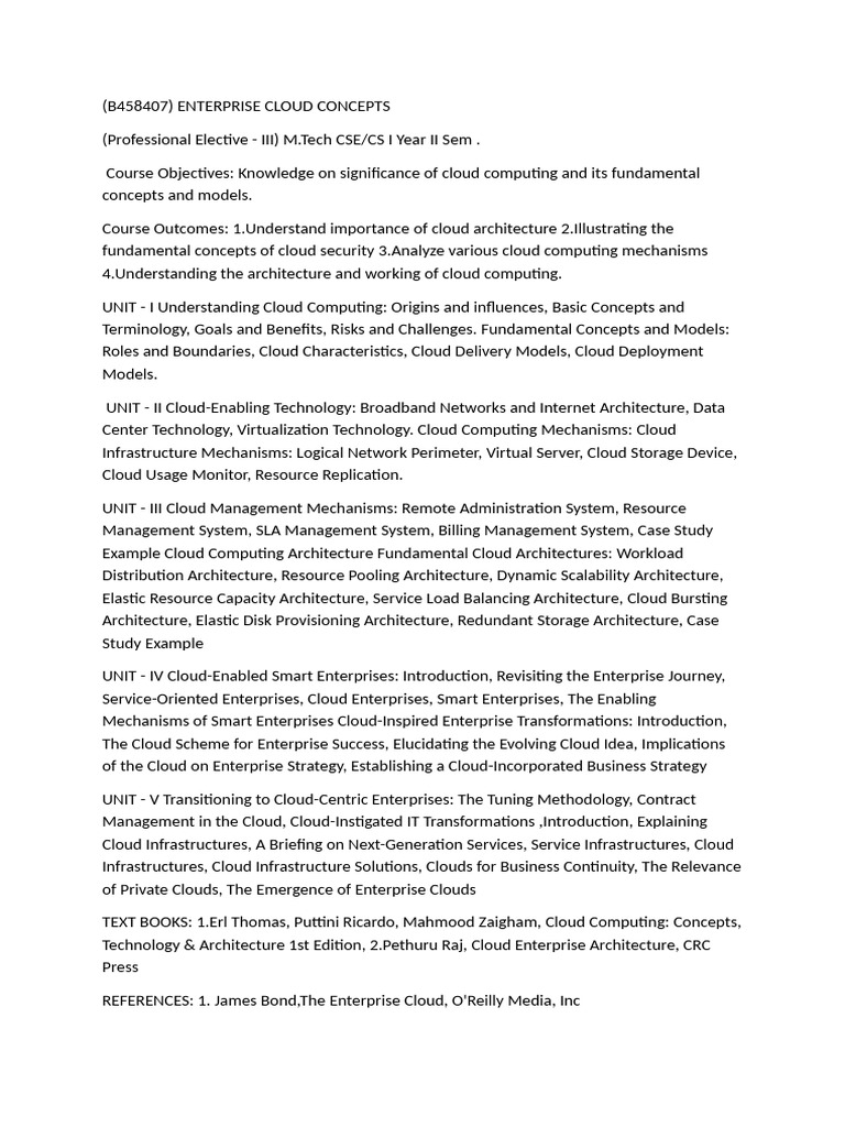 TEXT BOOKS: 1.Erl Thomas, Puttini Ricardo, Mahmood Zaigham, Cloud Computing: Concepts,
