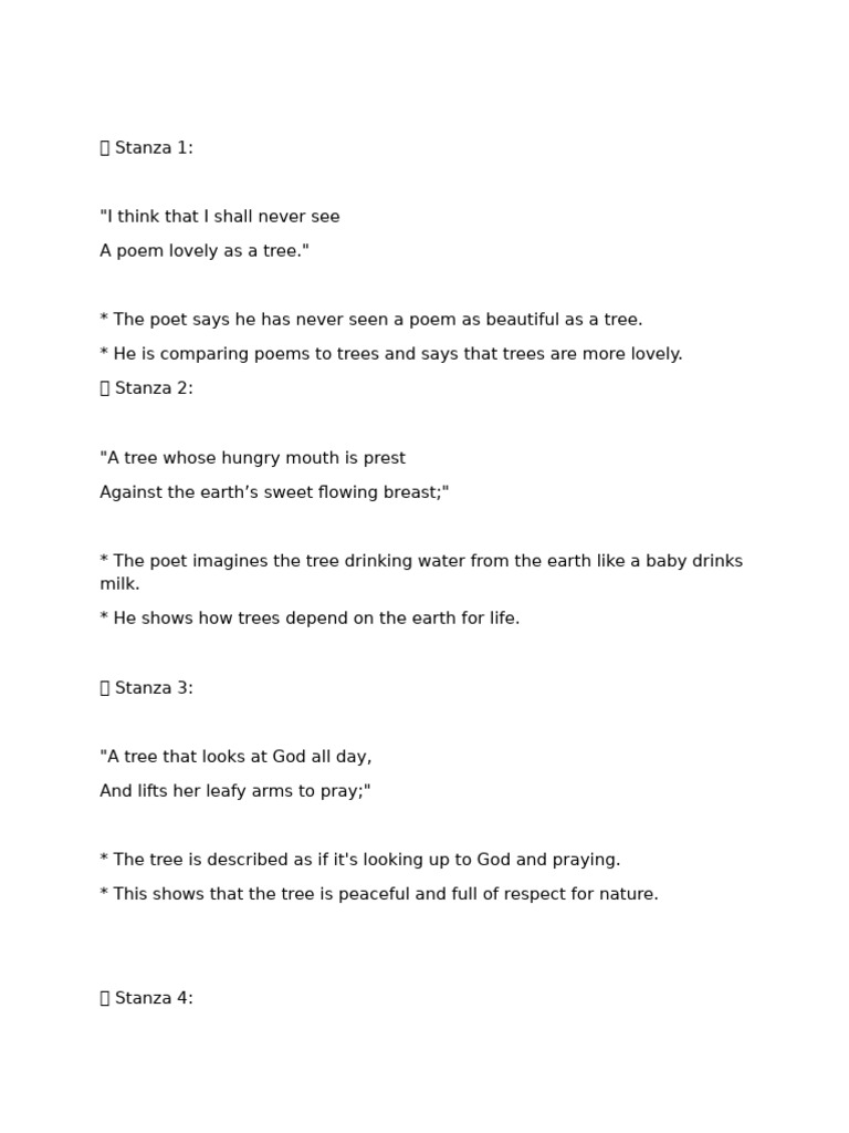 * The poet imagines the tree drinking water from the earth like a baby drinks