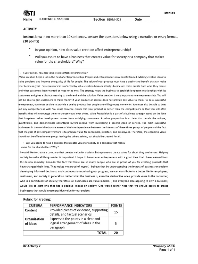your business great. Entrepreneurship is affected by value creation because it helps businesses make profits from what they create